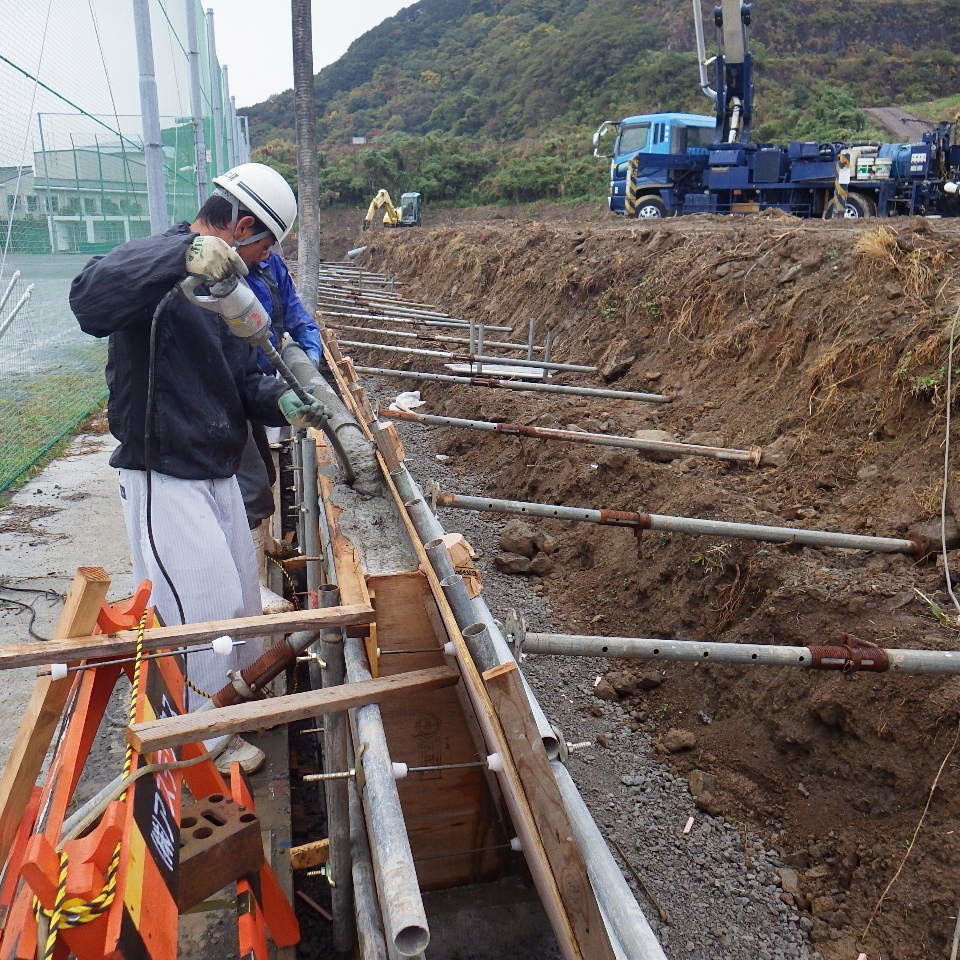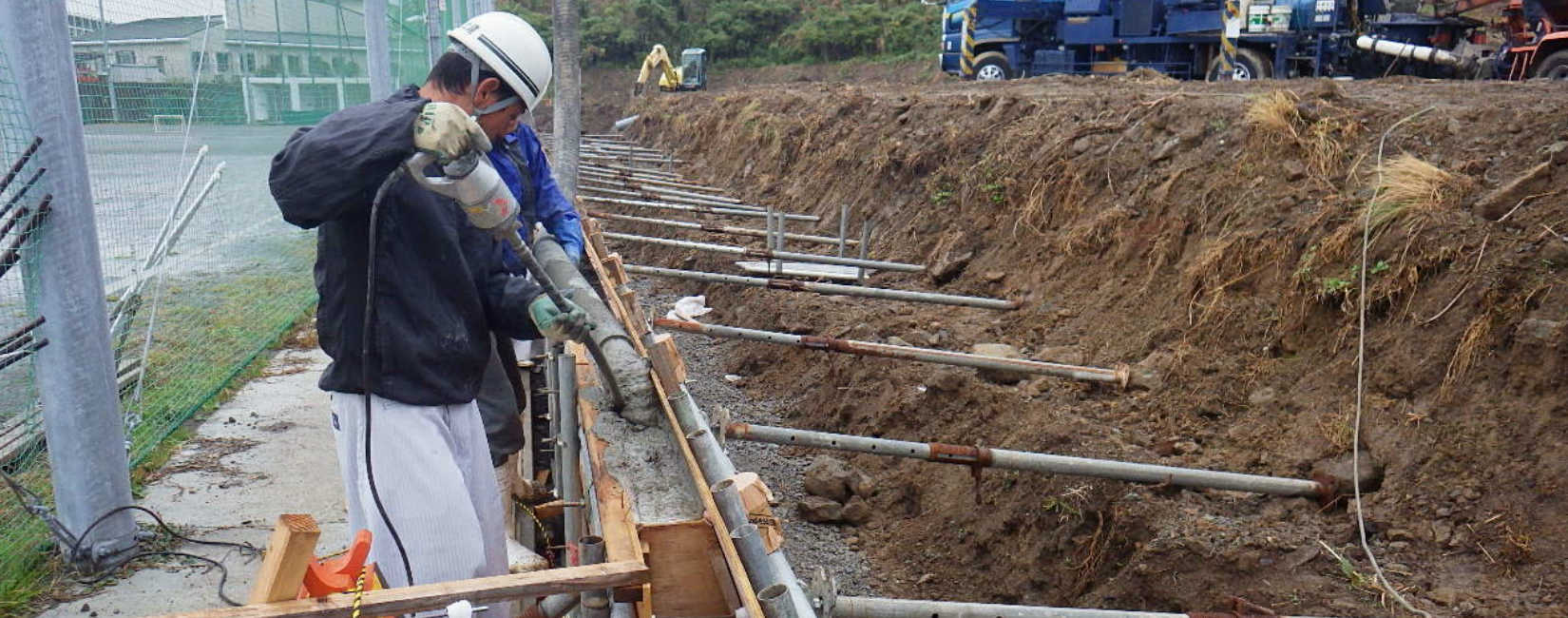 振動機などを使いコンクリートが満遍なく行き渡るようにします。